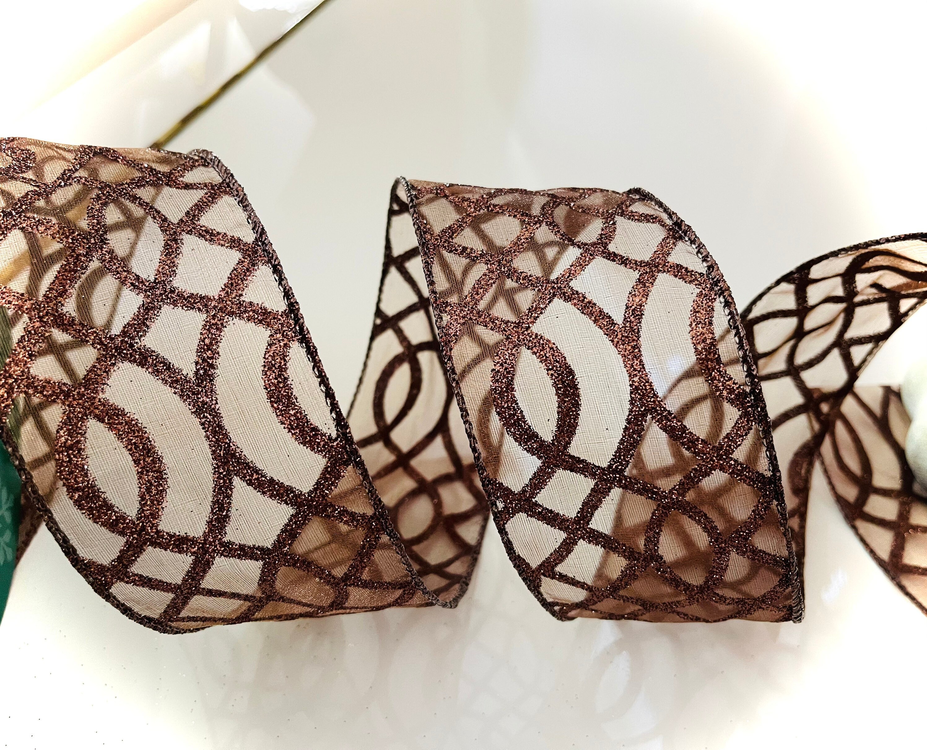 2.5” Brown Lattice Sparkle Wired Ribbon