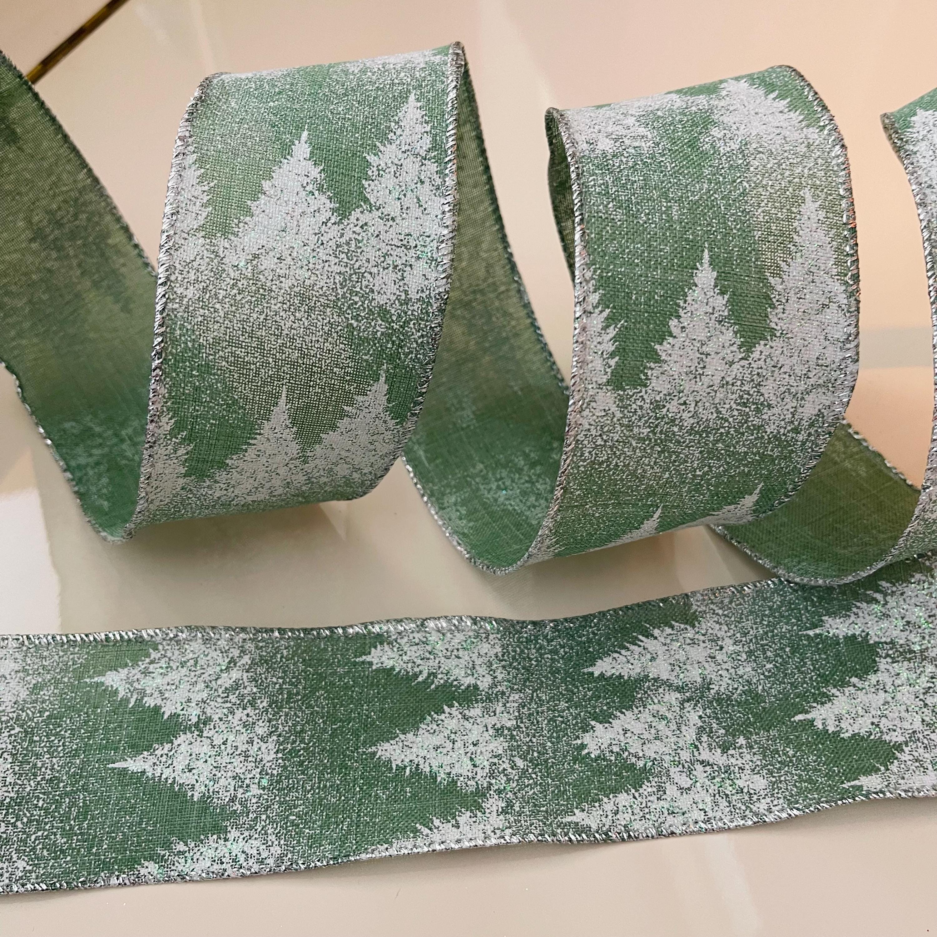 2.5” Green & White Snowy Forest Trees Wired Ribbon #146