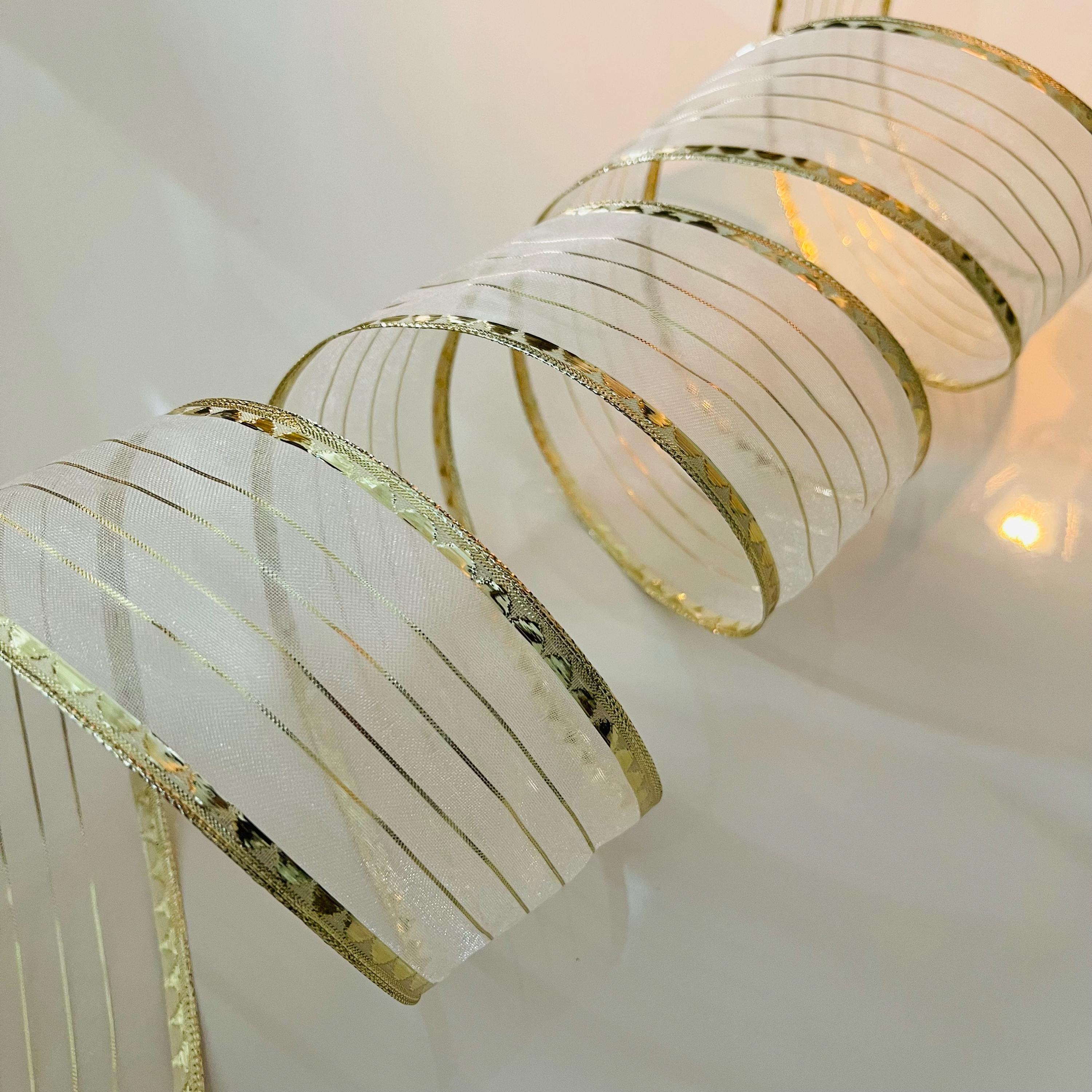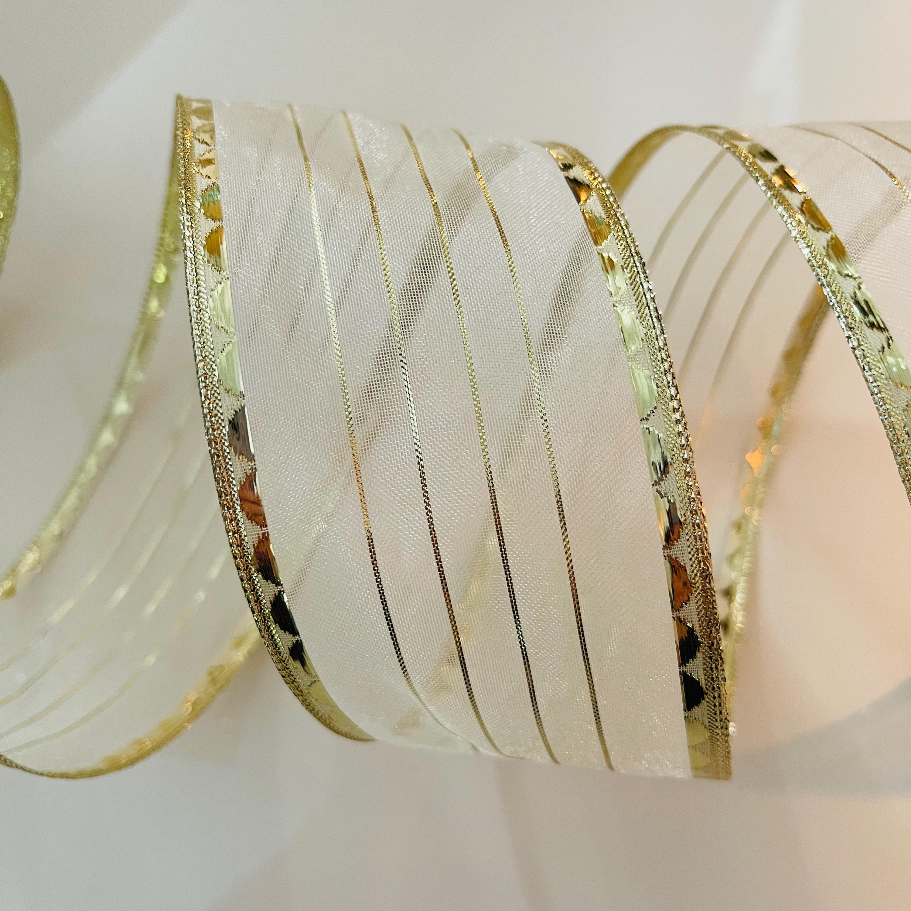 2.5” Golden Stripes Sheer Wired Ribbon