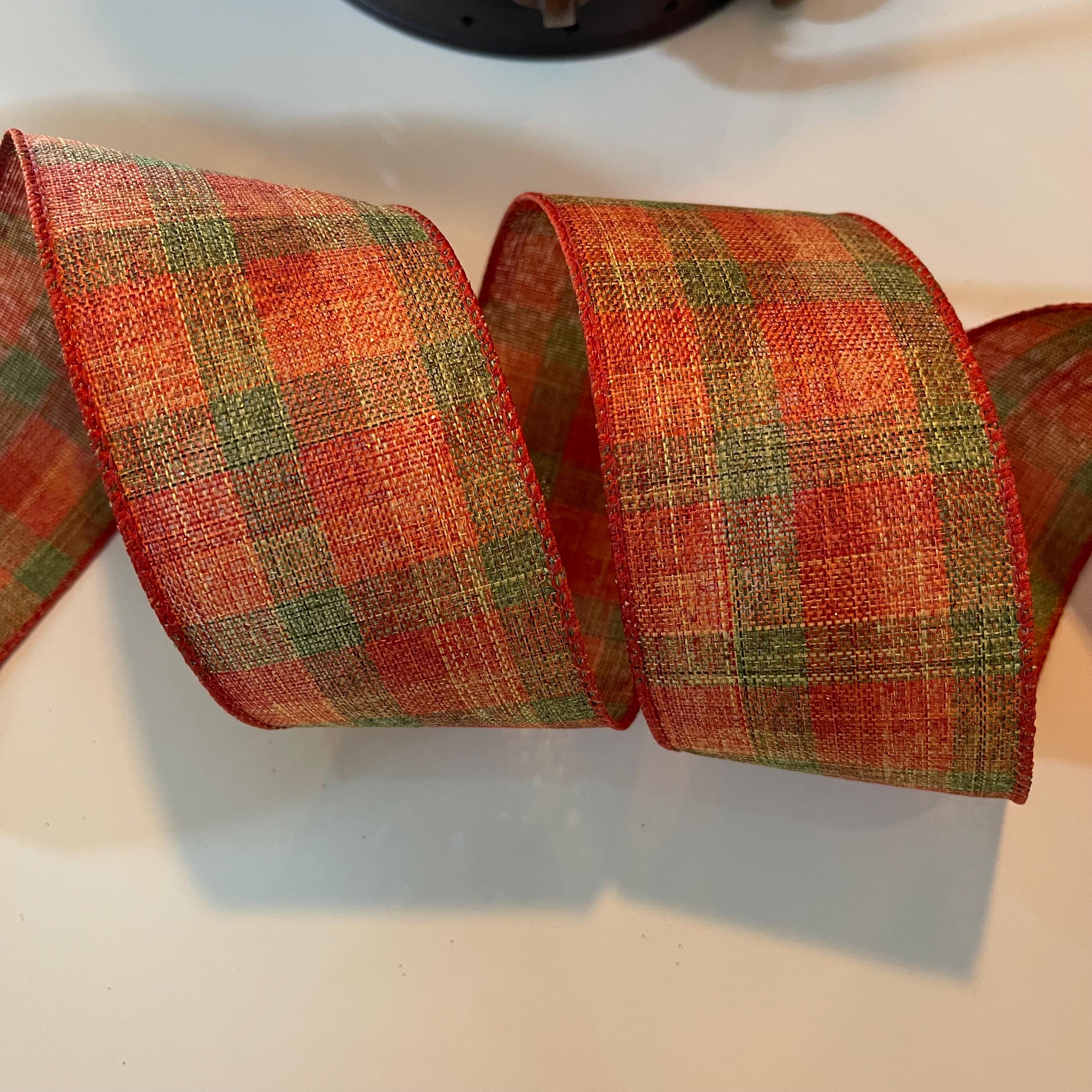 2.5” Orange & Green Lightly Glitter Misted Plaid Wired Ribbon