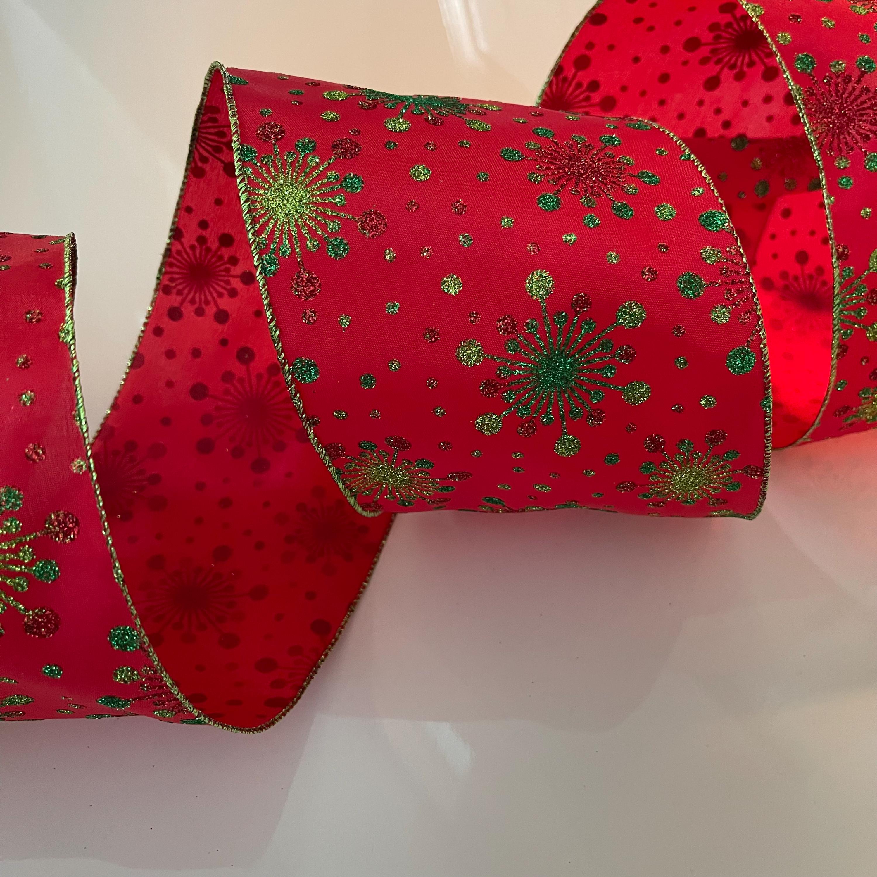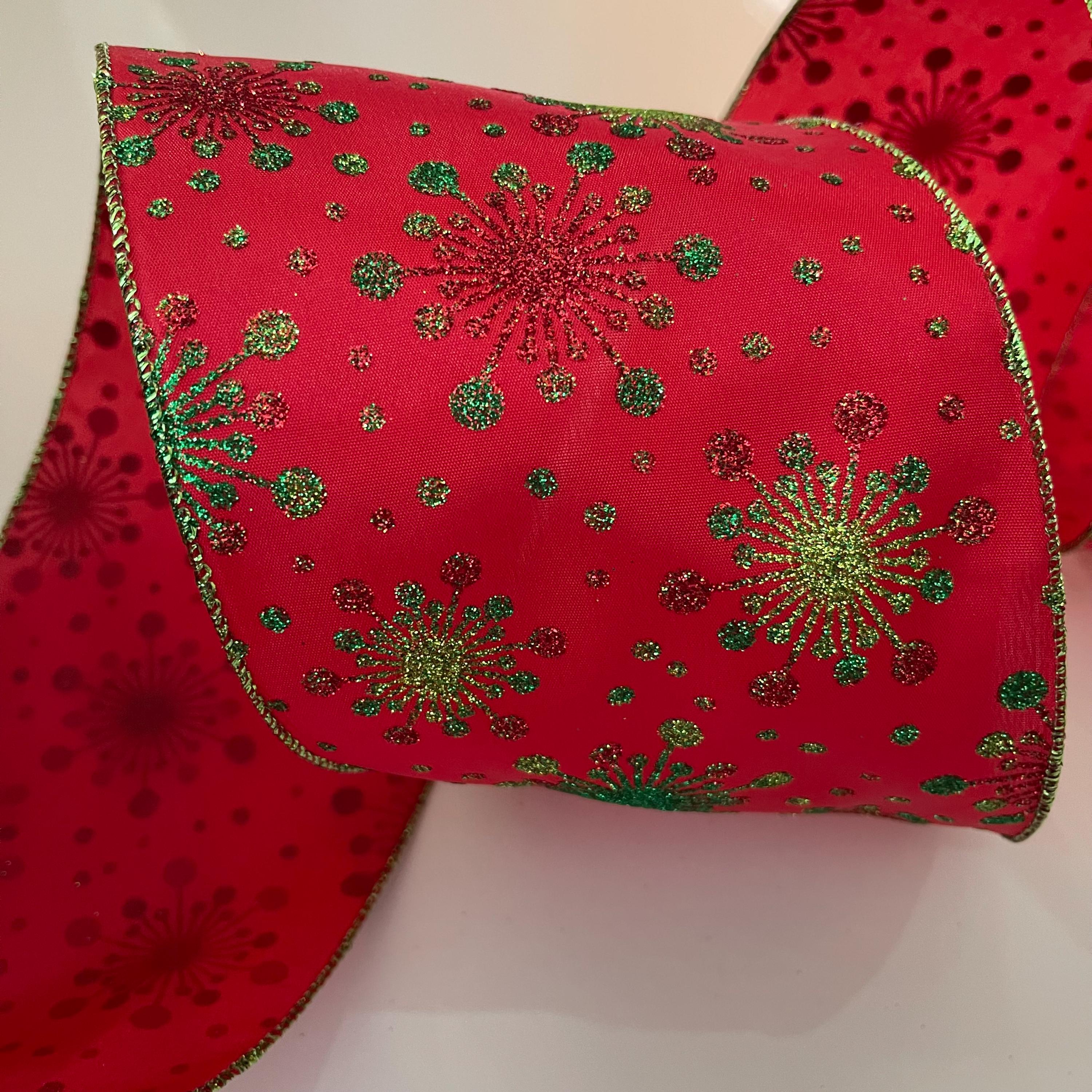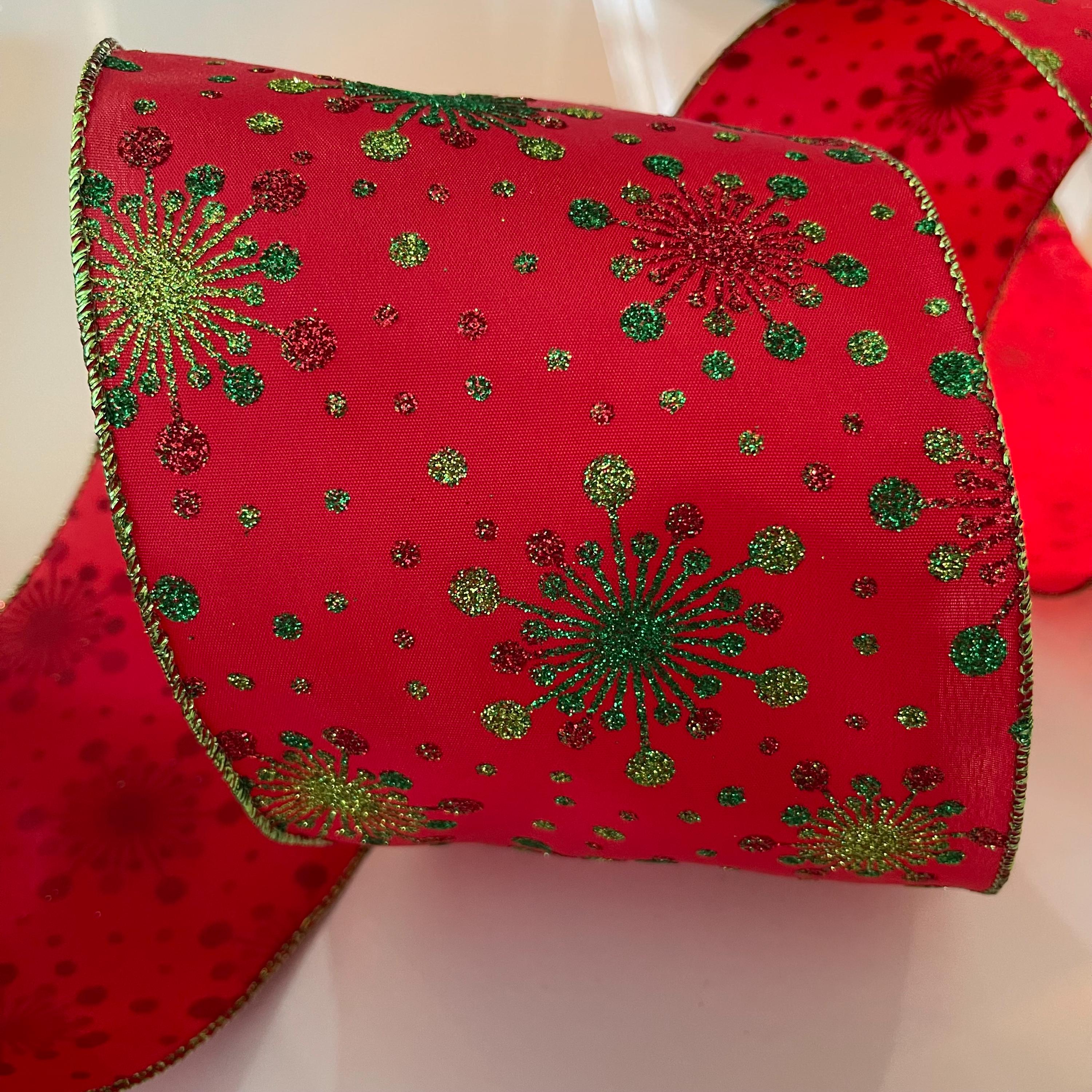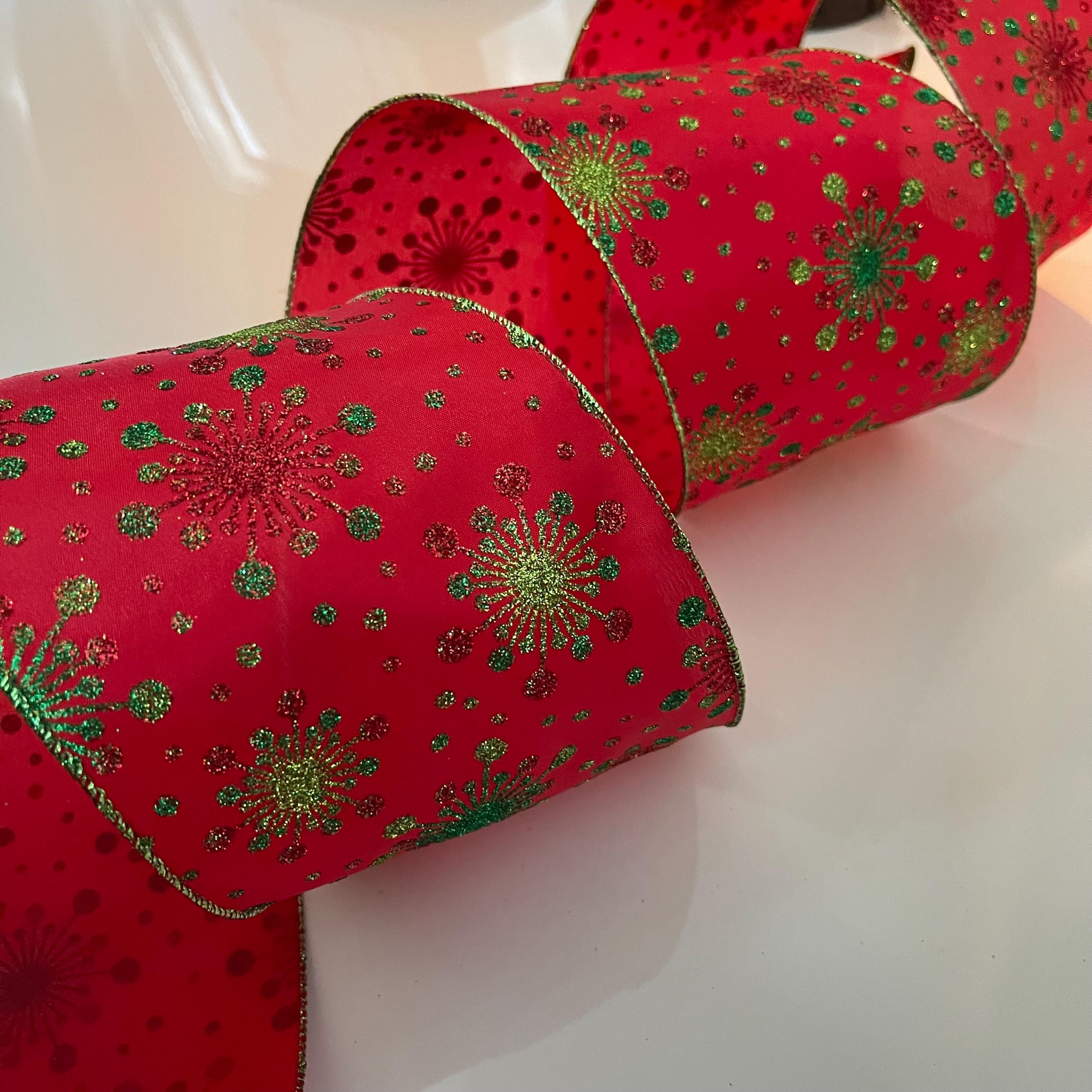 5” Glittery Snowflakes Red & Green Wired Ribbon