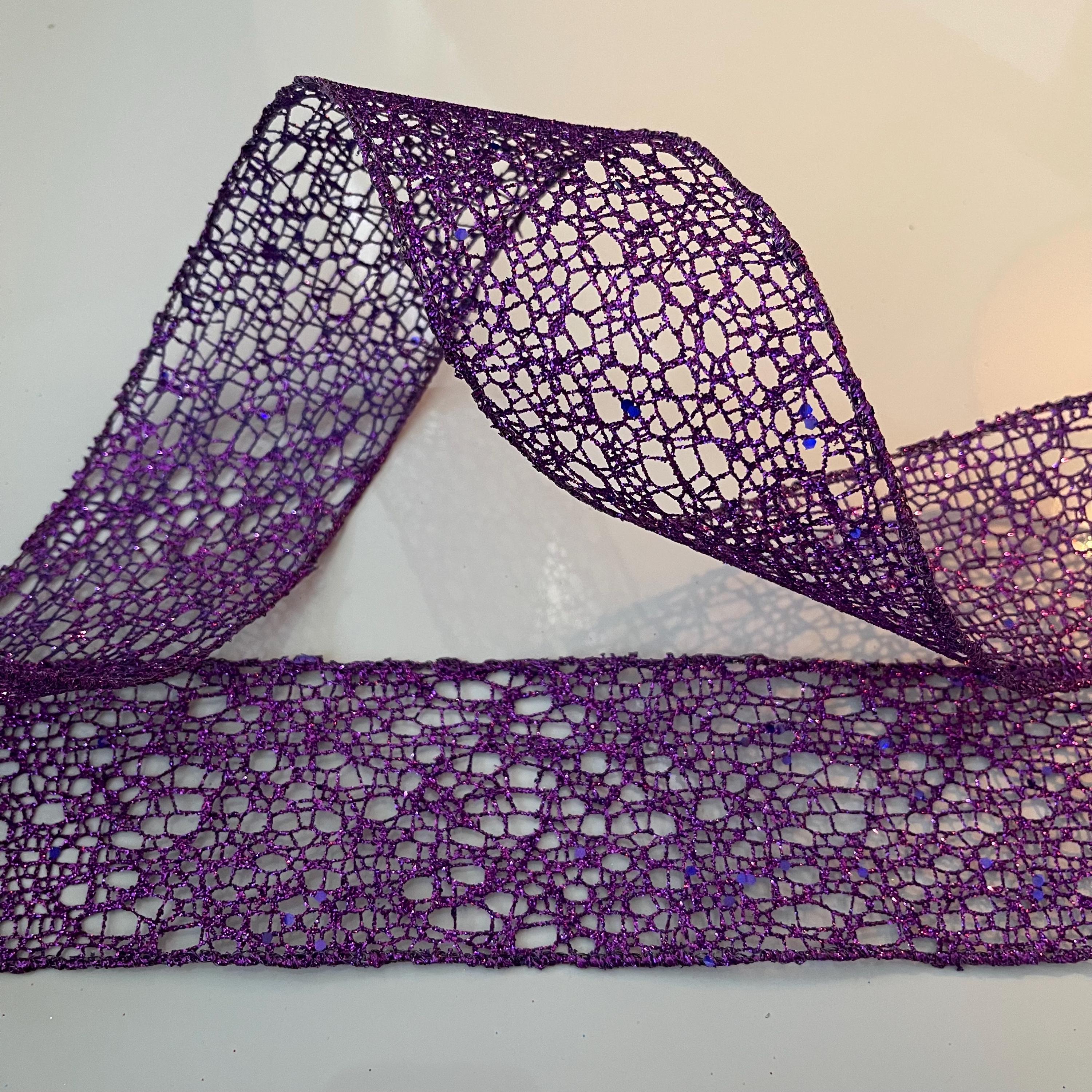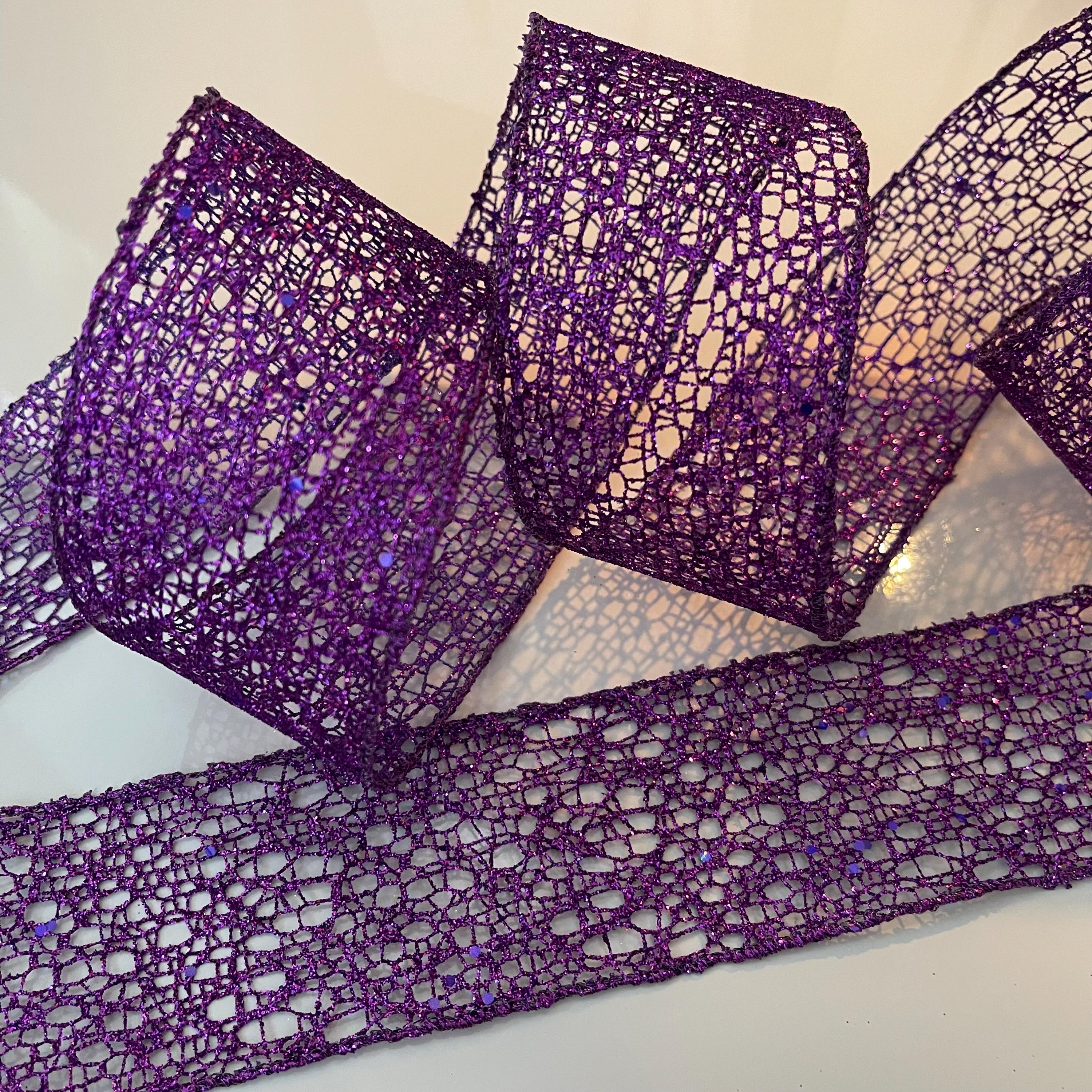 2.5” Purple Glitter Webbed Wired Ribbon - Perfect for Gift Wrapping, Wreaths, Decor & Much More!