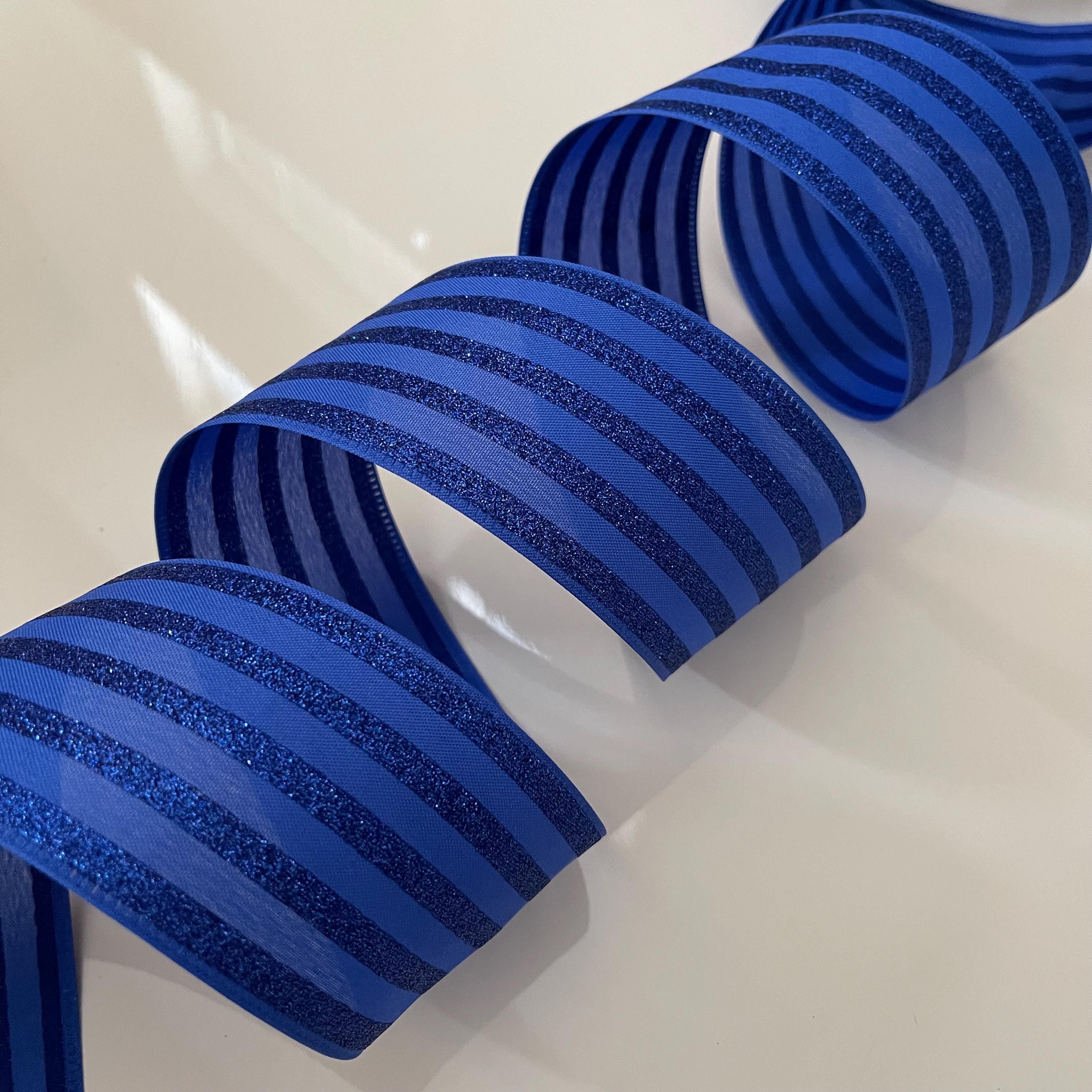2.5” Royal Blue Glittery Stripes Wired Ribbon