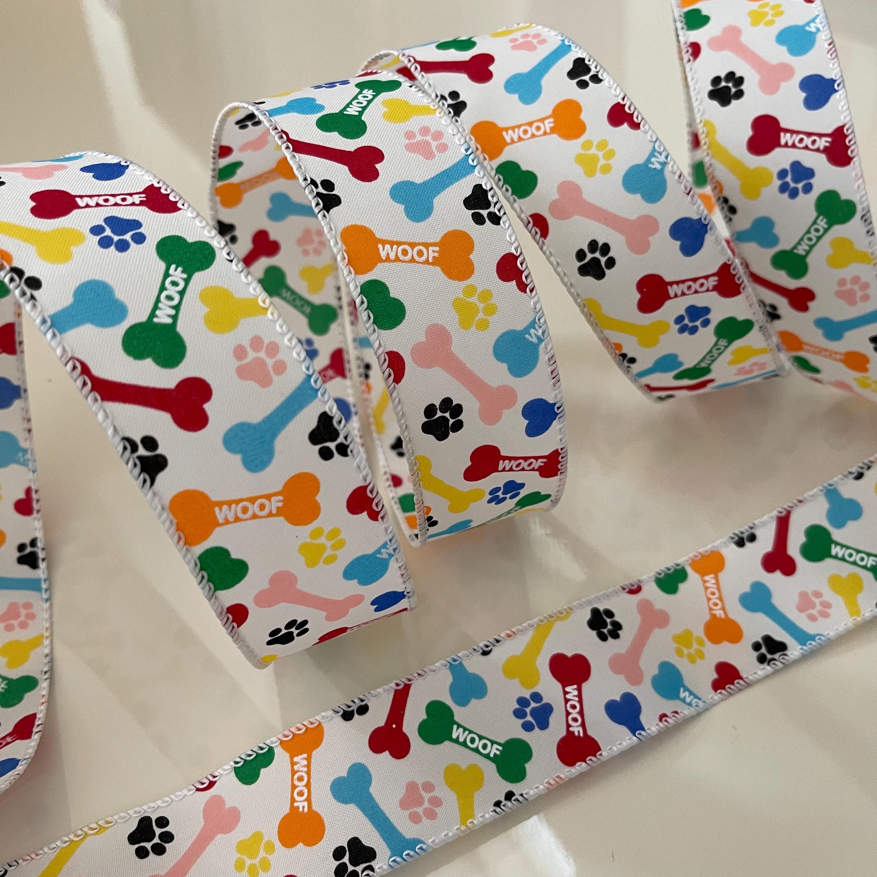 1.5” Colorful Dog Bone & Paw Print Wired Ribbon