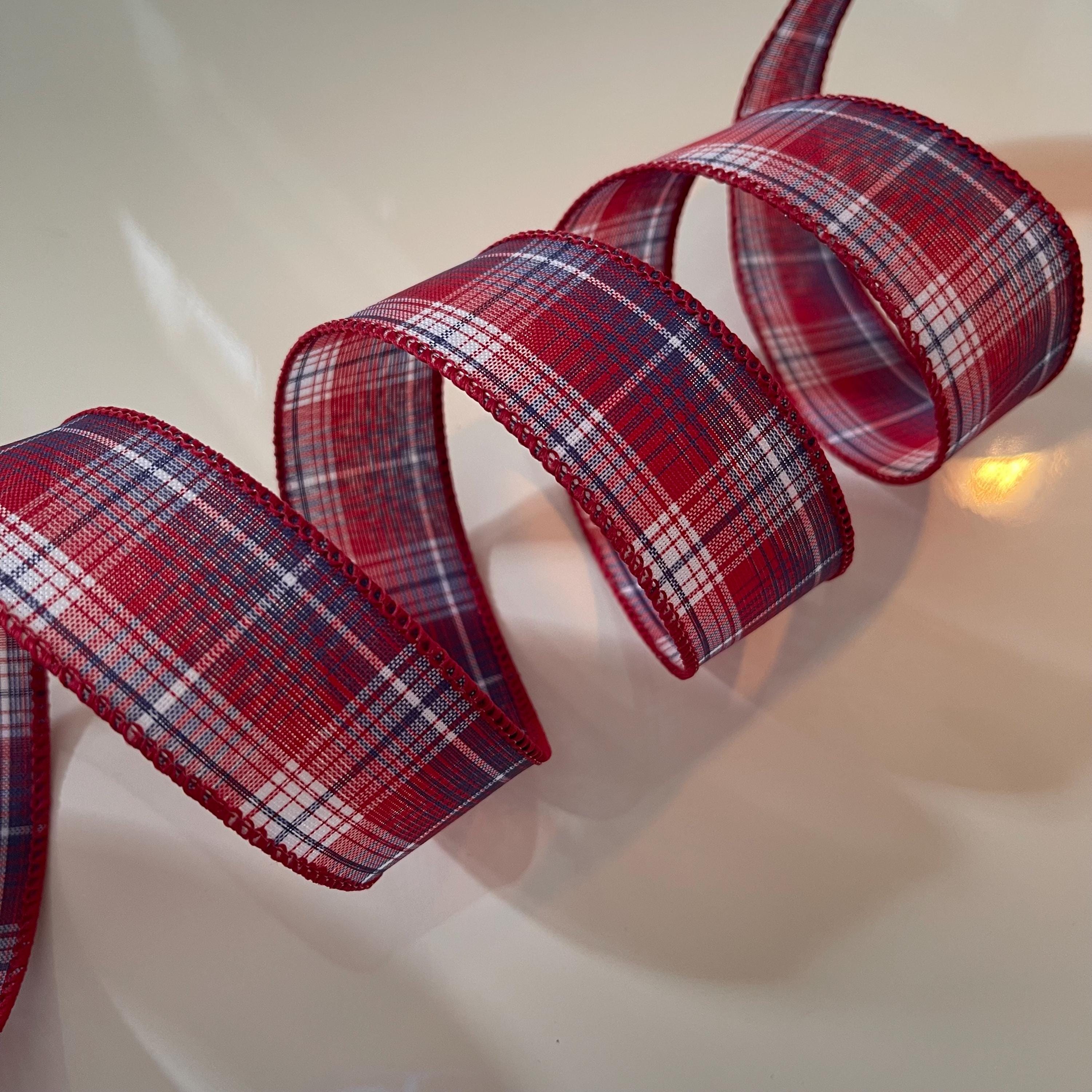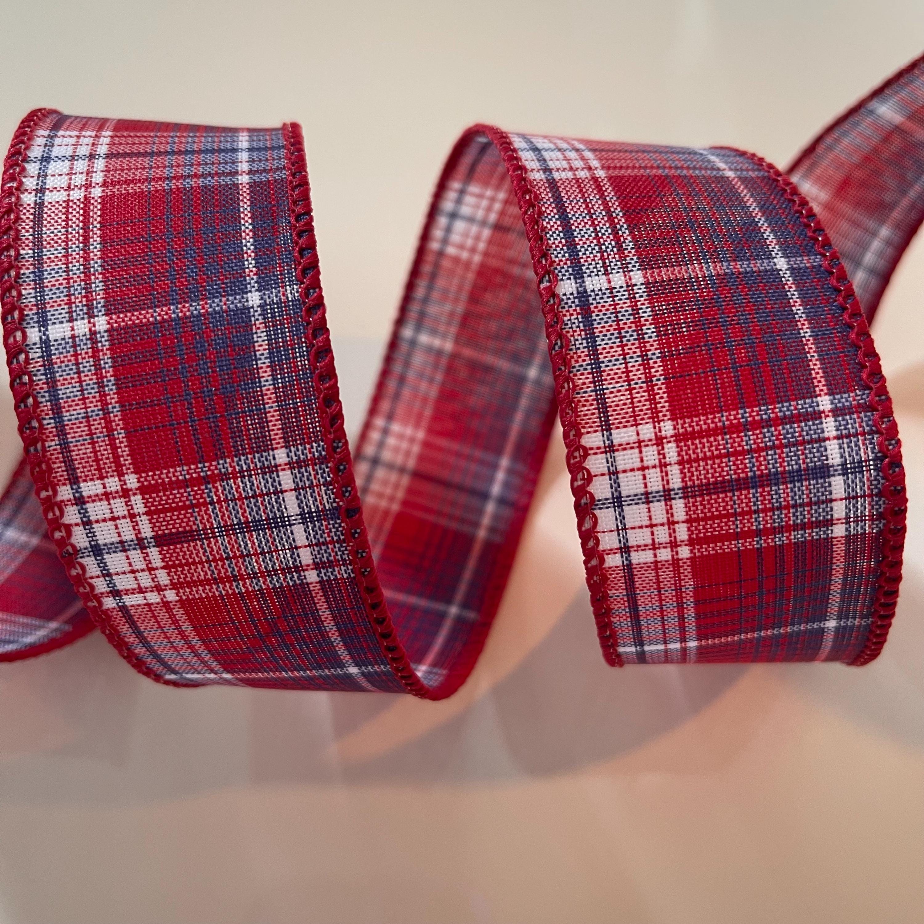 1.5” Red, White, & Blue Plaid Wired Ribbon
