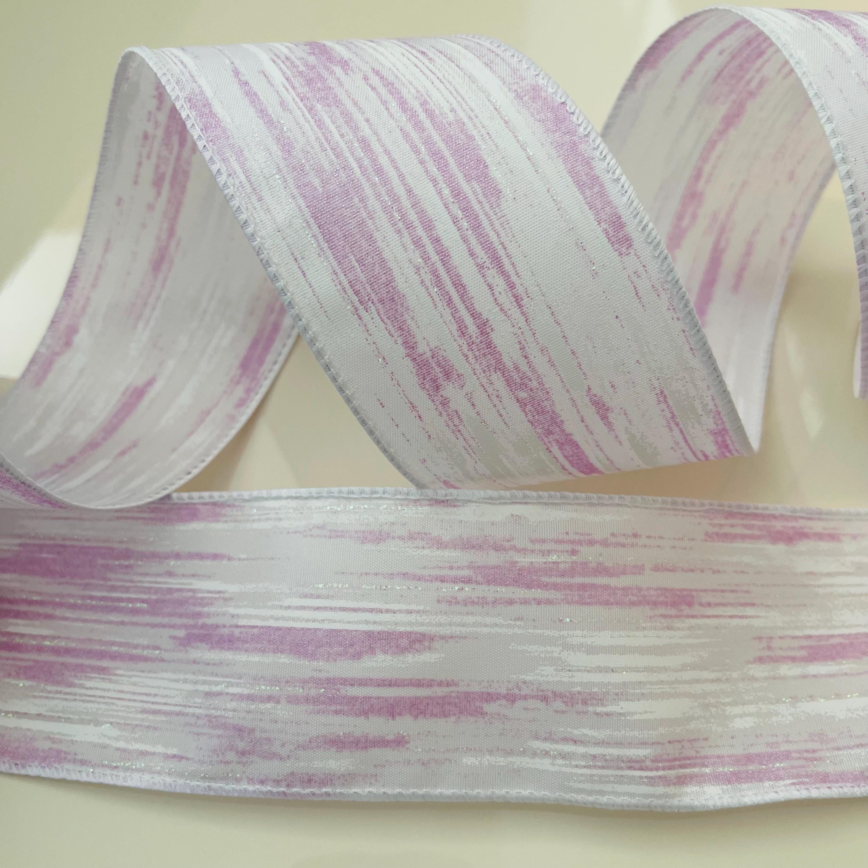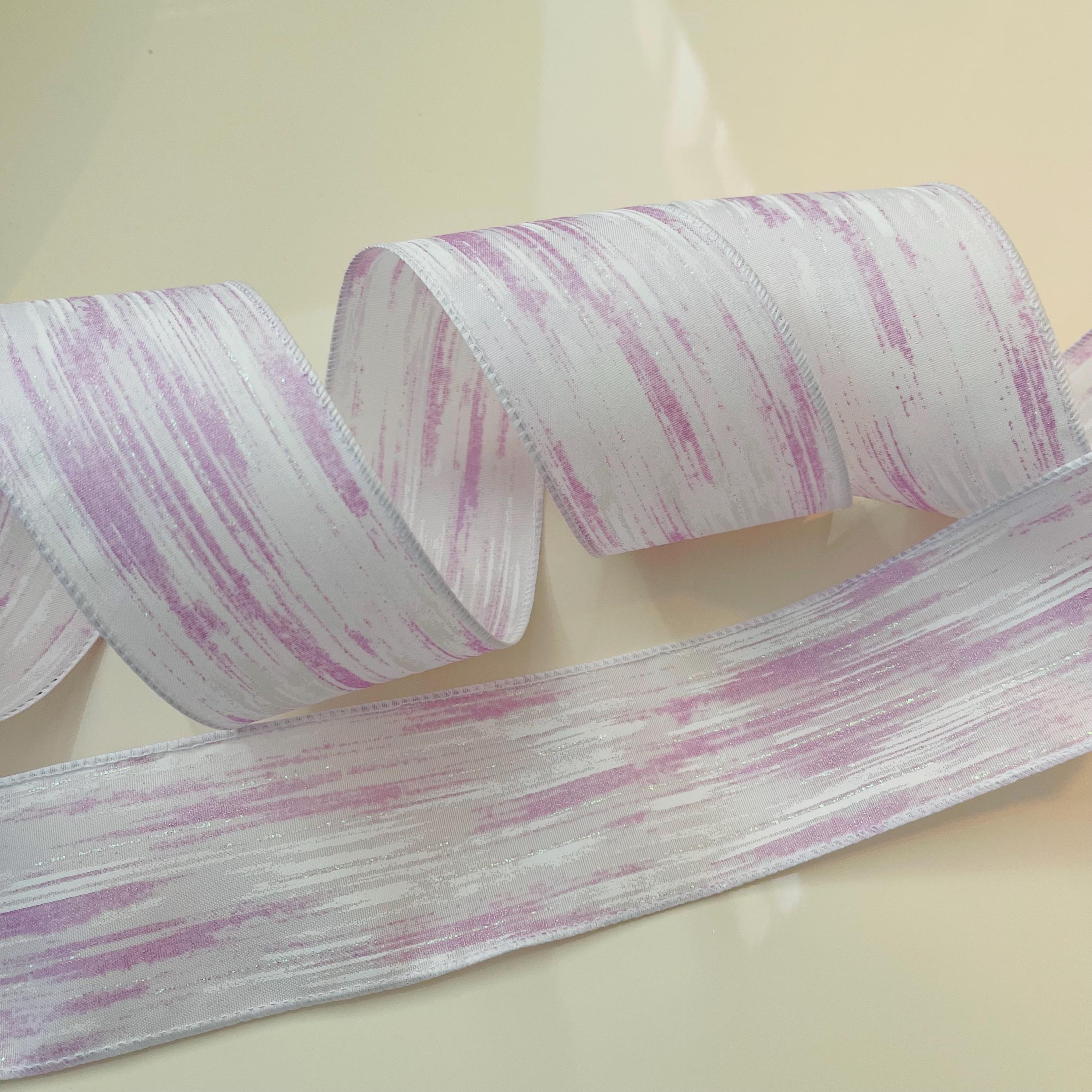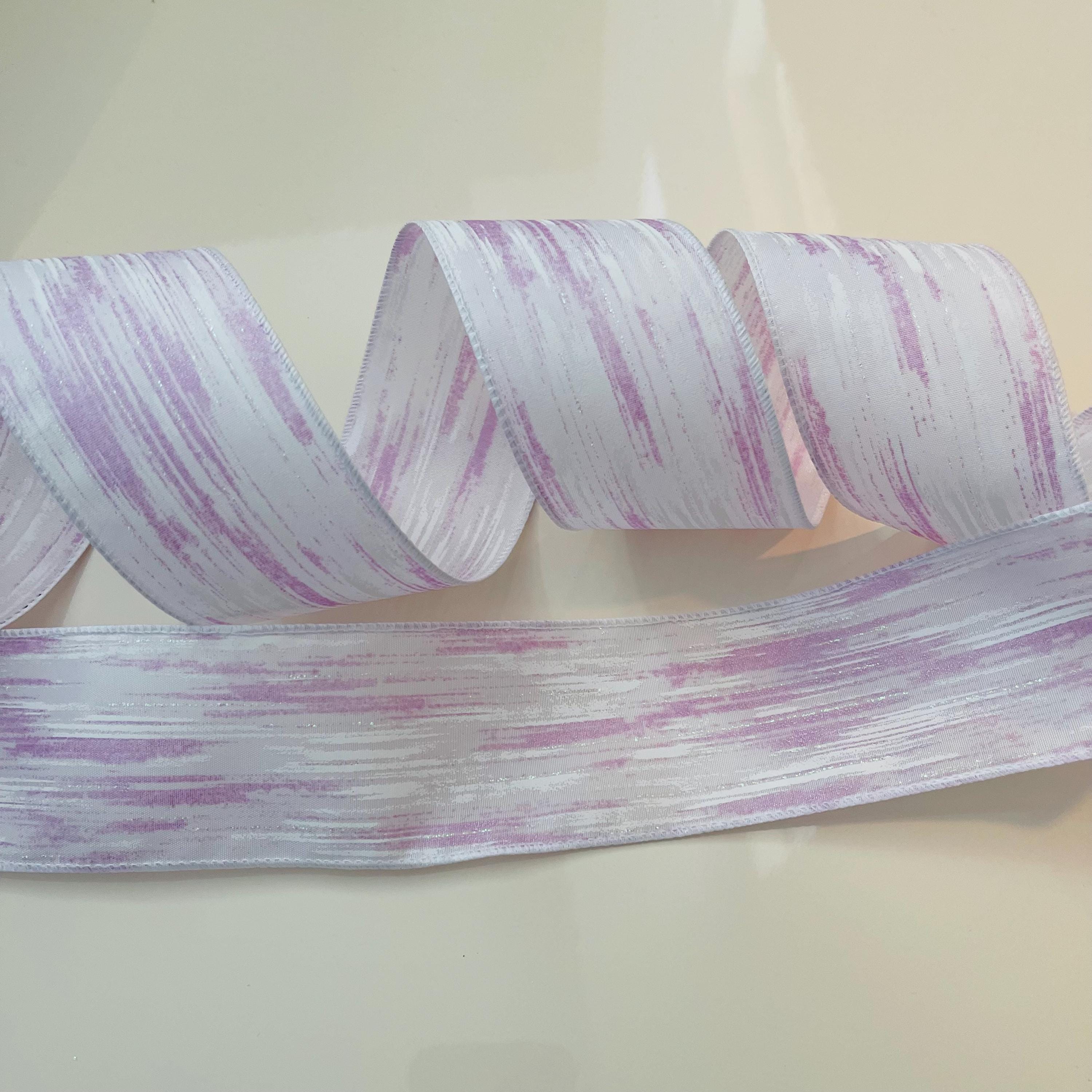 2.5" Lavender & White Streaks Soft Glitter Wired Ribbon