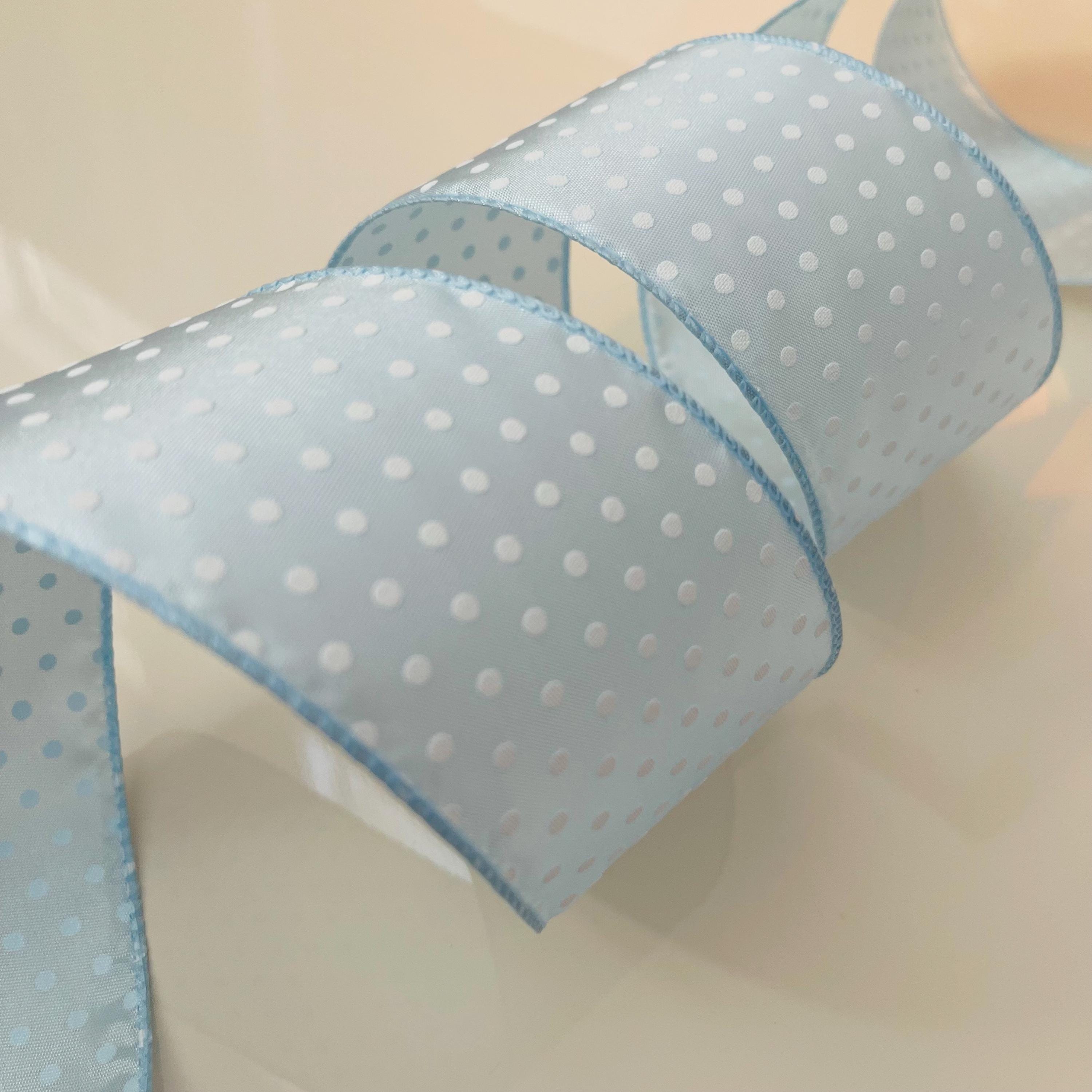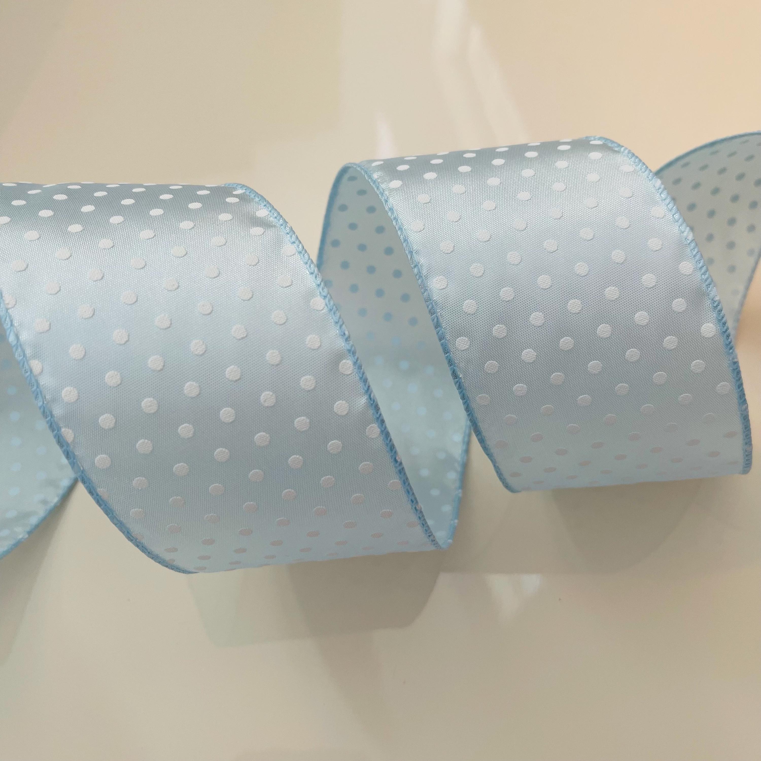 2.5" Light Blue With White Polka Dots Wired Ribbon